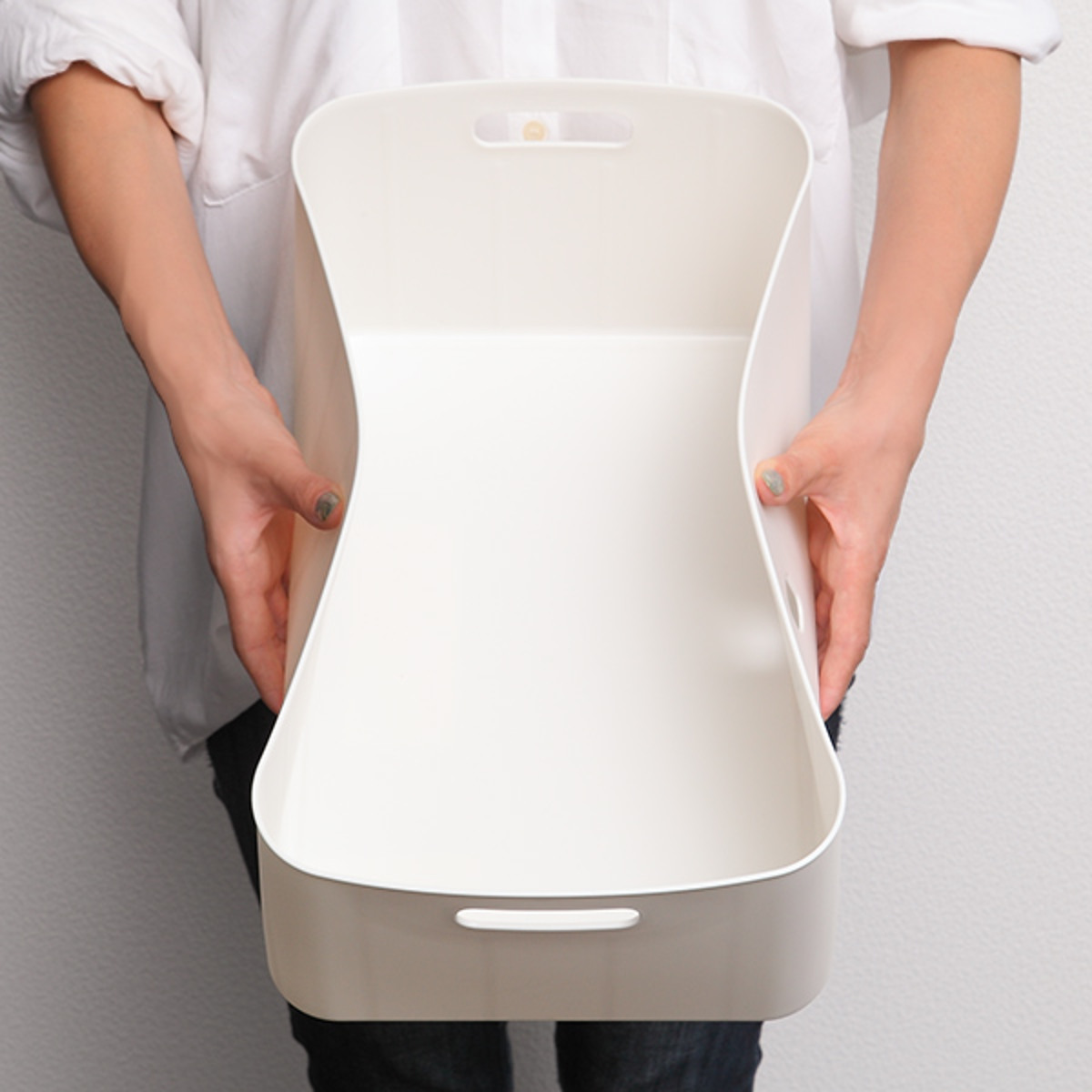 正面一か所にある楕円の穴は、棚の上やベッド下などにあるボックスを引き出す際に役立ちます。また中身を確かめる際にも便利です。