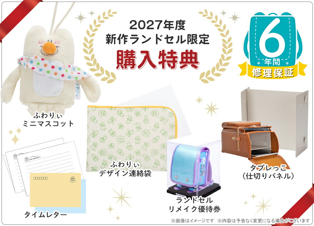 ランドセル 女の子 ふわりぃ プラチナセレクト 2027年度新作モデル A4フラットファイル タブレットPC チェストベルト 軽量 反射 6年保証 日本製 正規品