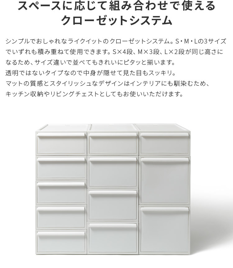 衣装ケース クローゼットシステム S 押入れ収納 衣類収納 引き出し 積み重ね スタッキング 浅型 小さめ 収納ケース 収納ボックス クローゼット チェスト 単品