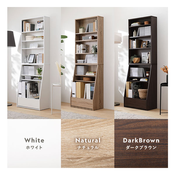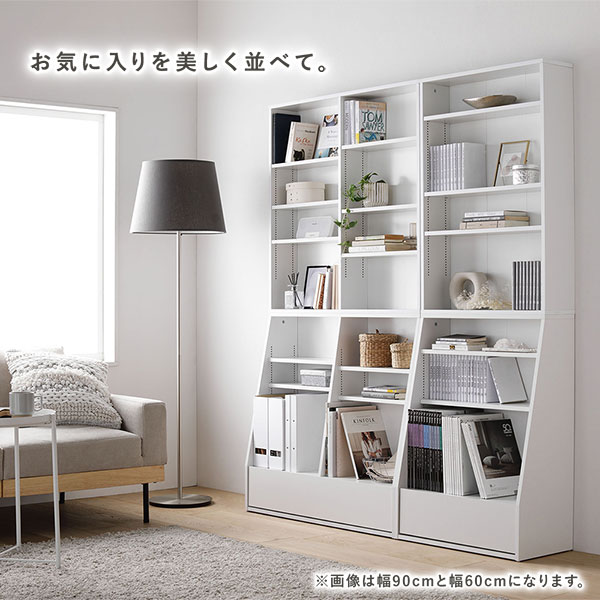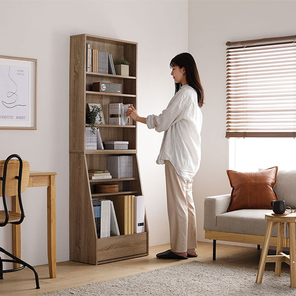 一番下の棚は奥行があるので、A4ファイルや雑誌も収納できます。