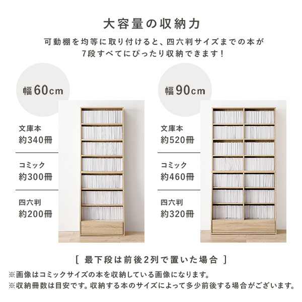 ※収納冊数は目安です。収納する本のサイズによって多少前後する場合がございます。