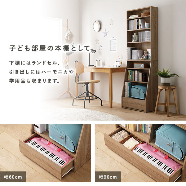 下棚にはランドセル、引き出しにはハーモニカや学用品も収まります。