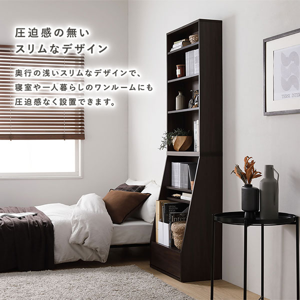 奥行の浅いスリムなデザインで、寝室や一人暮らしのワンルームにも