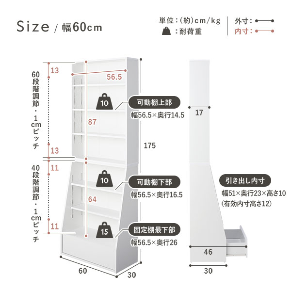 ハイタイプ 60cm幅:幅60×奥行30×高さ175cm・25.5kg