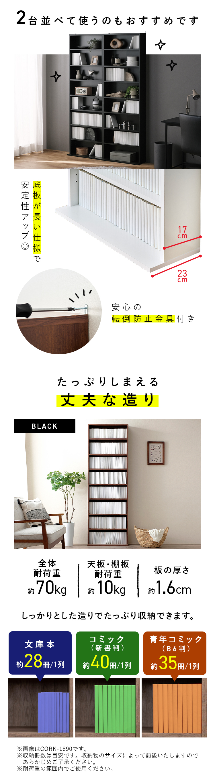 本棚 大容量 おしゃれ 薄型 スリム カラーボックス 収納 絵本棚 収納棚 コミックラック 漫画 ハイタイプ 木製 ラック 北欧 アイリスオーヤマ CORK-1860