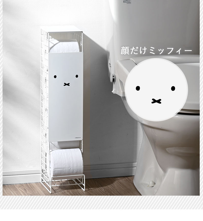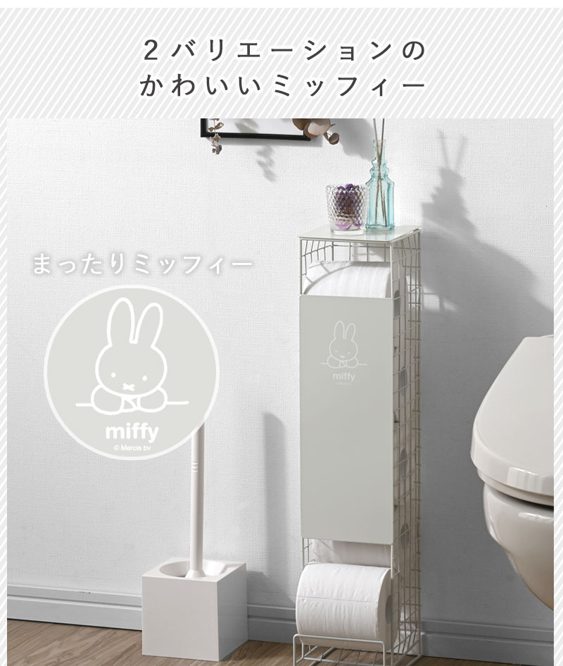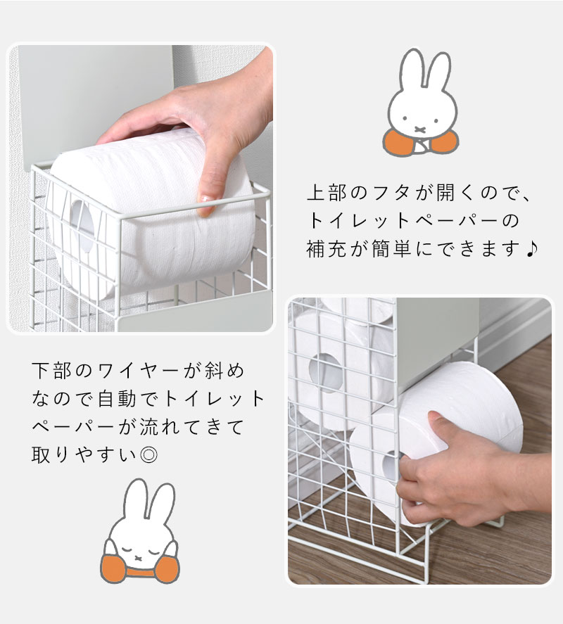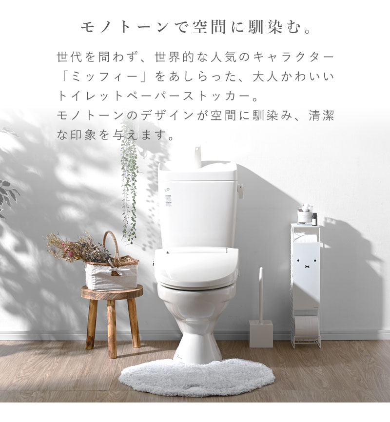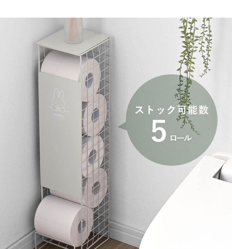 送料無料 トイレットペーパーストッカー ミッフィー 5ロール トイレラック トイレ収納 幅13cm トイレットペーパースタンド トイレ ストッカー トイレットペーパー 見えない 小物置き おしゃれ かわいい 棚 収納 コンパクト 省スペース スリム サニタリー 収納 ホワイト 白 シンプル