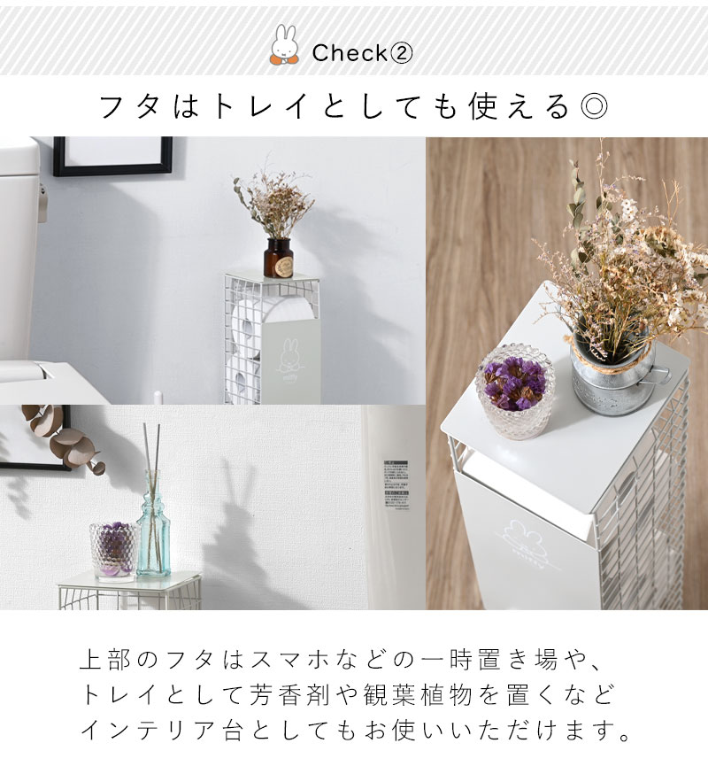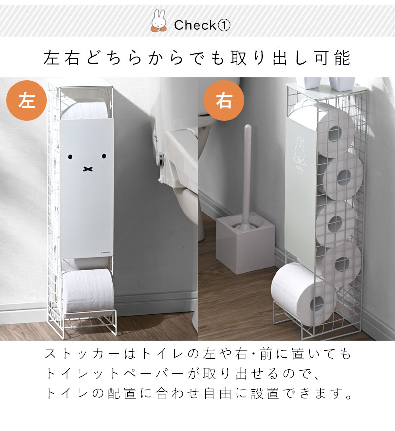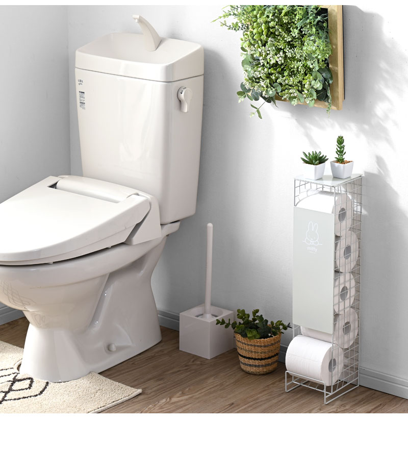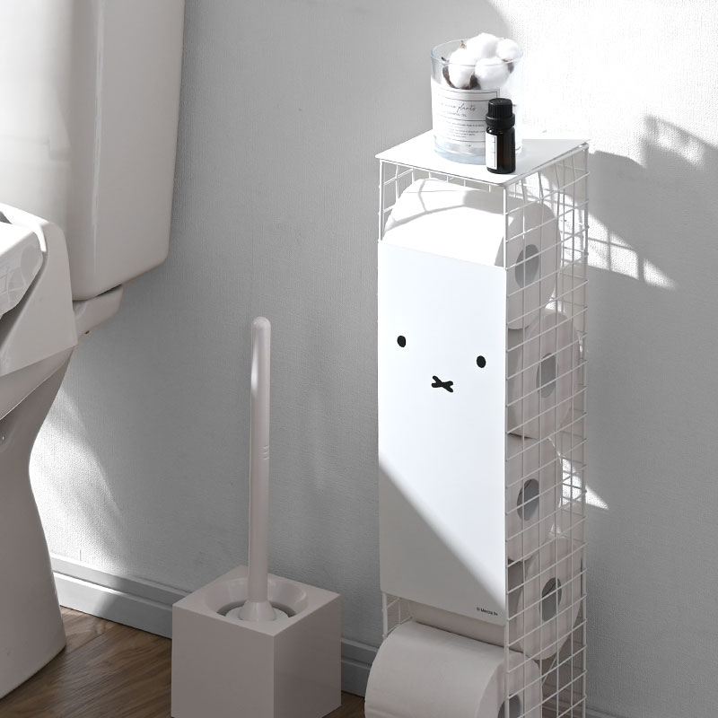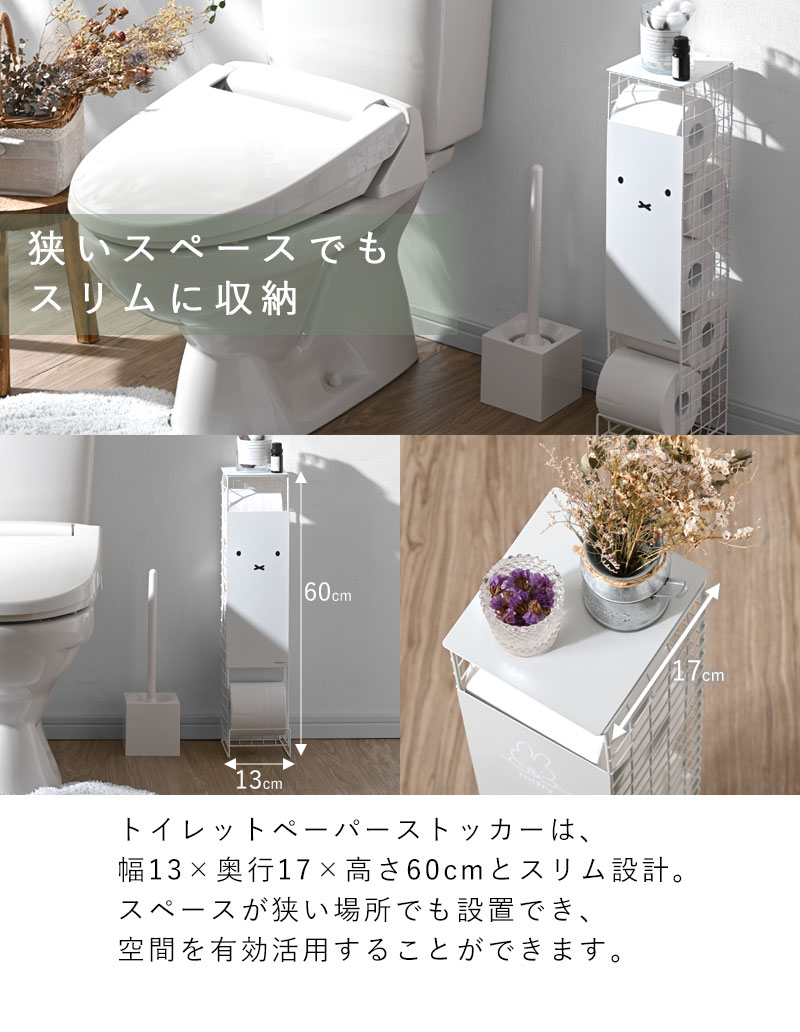 送料無料 トイレットペーパーストッカー ミッフィー 5ロール トイレラック トイレ収納 幅13cm トイレットペーパースタンド トイレ ストッカー トイレットペーパー 見えない 小物置き おしゃれ かわいい 棚 収納 コンパクト 省スペース スリム サニタリー 収納 ホワイト 白 シンプル