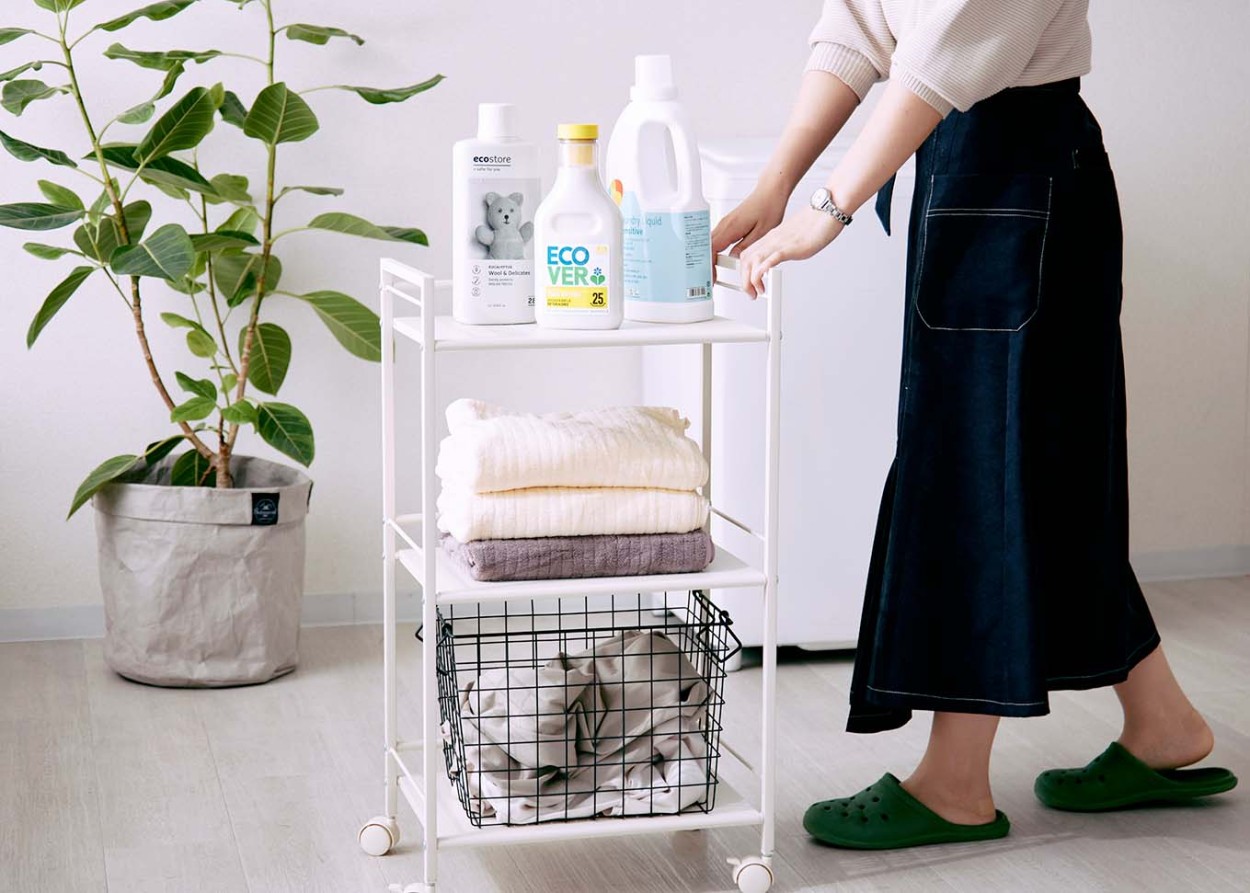 バスタオルや洗剤を収納して洗濯を快適にすることができます。