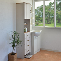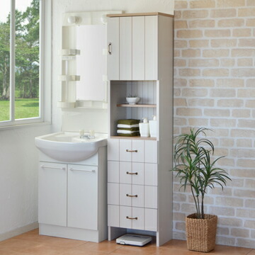 洗面台や洗濯機横の隙間を収納スペースへと変えてしまう収納ラック。扉収納とオープン収納、引き出し収納の組み合わせで、洗剤やタオルコスメなどの小物類も収納可能。常に清潔で美しい空間でありたい場所。きっとあなたが欲しかった空間を作り出せます。