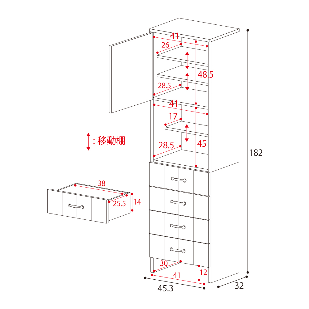 外寸:幅45.3 奥行32 高さ182(cm)