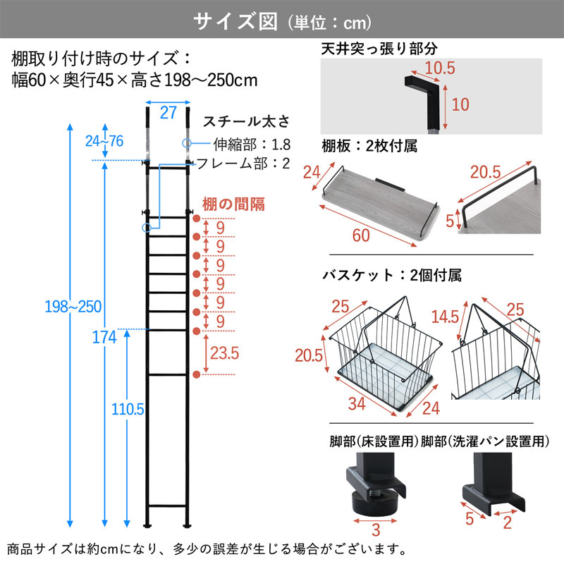 (約)幅60cm×奥行き45cm×高さ198〜250cm