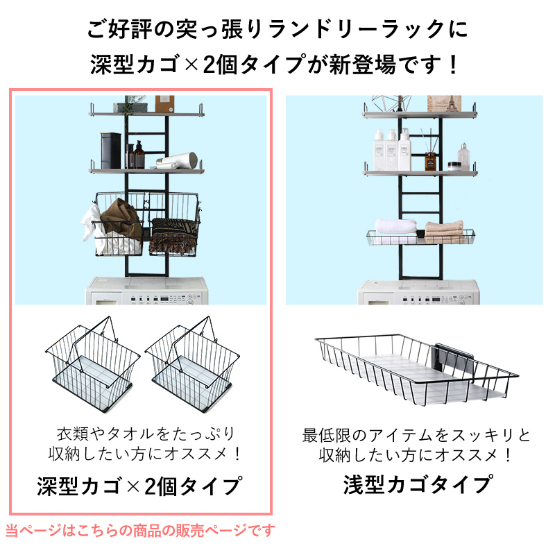 人気の突っ張りランドリーラックから深型カゴ2個タイプが登場しました。