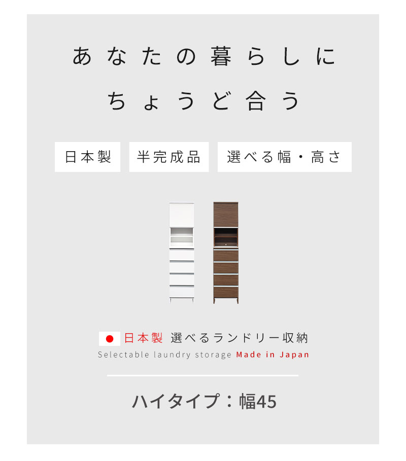 日本製 ランドリー収納 スリム 幅45cm 高さ180cm チェスト
