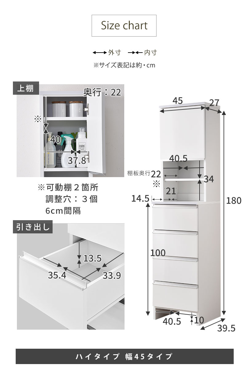 (約)幅45cm×奥行き39.5cm×高さ180cm