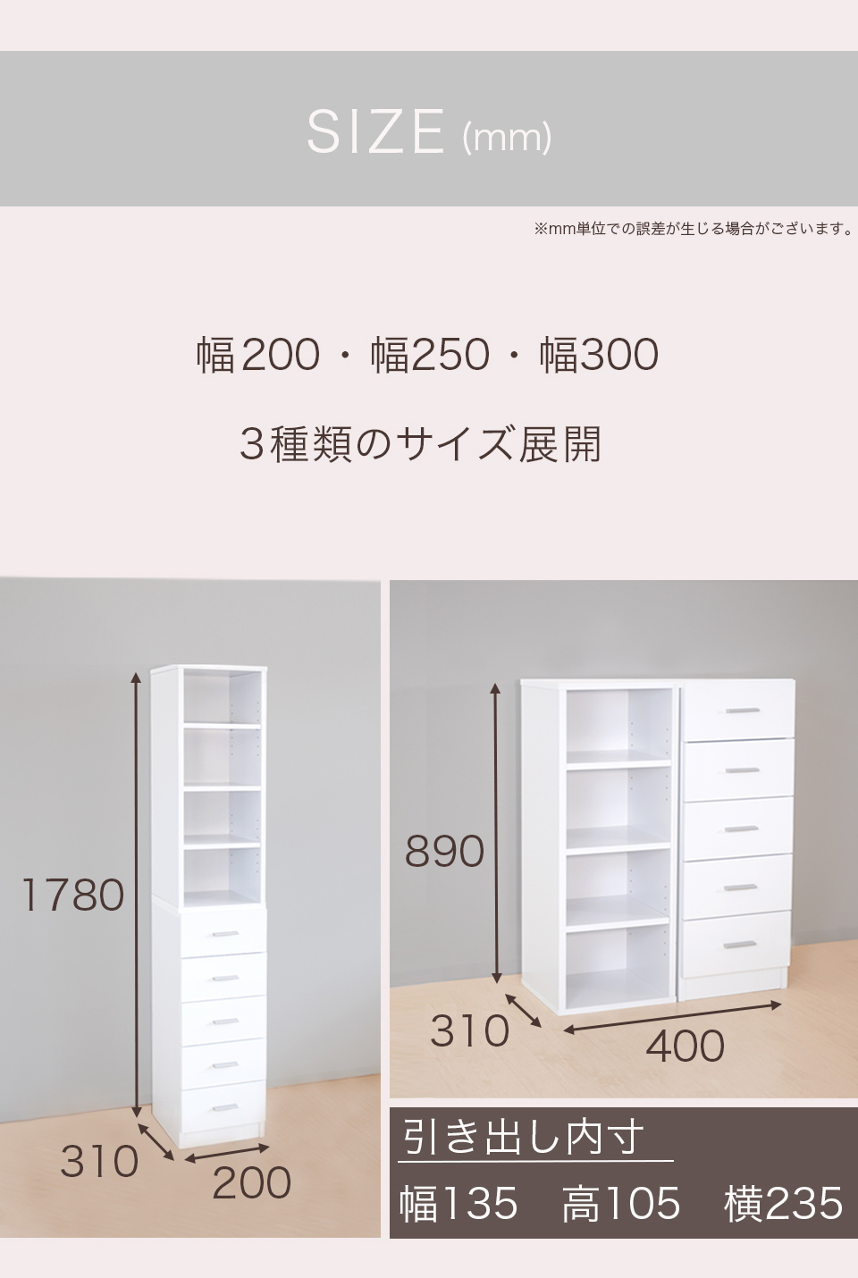 オープン収納内寸:約幅16×奥行27.5×高さ41.5cm(2ヶ所共通)