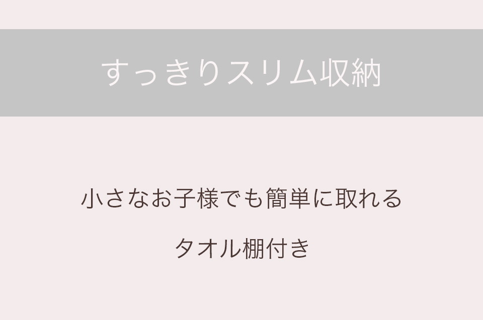 中央は固定棚、可動棚2枚、タオル用棚1枚付き
