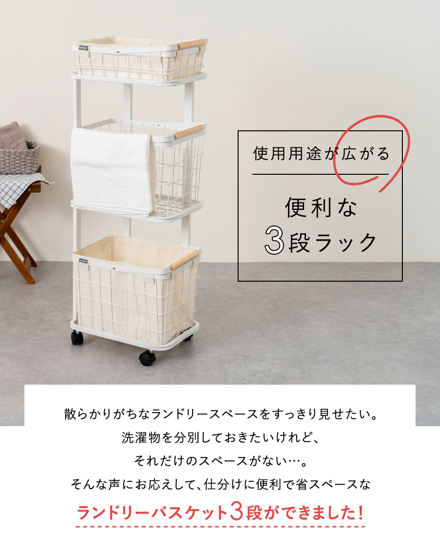 ランドリーバスケット 3段 キャスター付き スリム 洗濯かご 大容量 ワゴン ランドリーバッグ ランドリーワゴン ラック 収納 メッシュ アイアン 目隠し おしゃれ