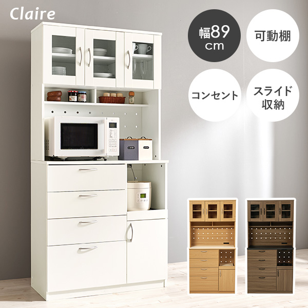 食器棚 スリム キッチンラック 一人暮らし キッチン収納 棚 ラック ガラス扉 引き出し 可動棚 大容量 扉付き スライド収納 ハイタイプ クレア