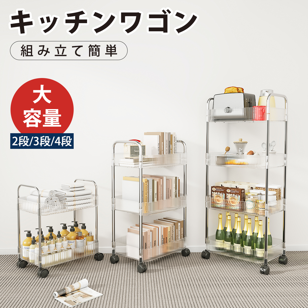 キッチンワゴン キャスター付き 収納ワゴン 大容量 スリム ハンドル付き キッチン収納 2段 3段 4段