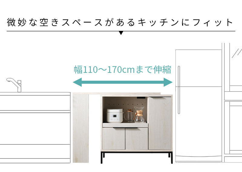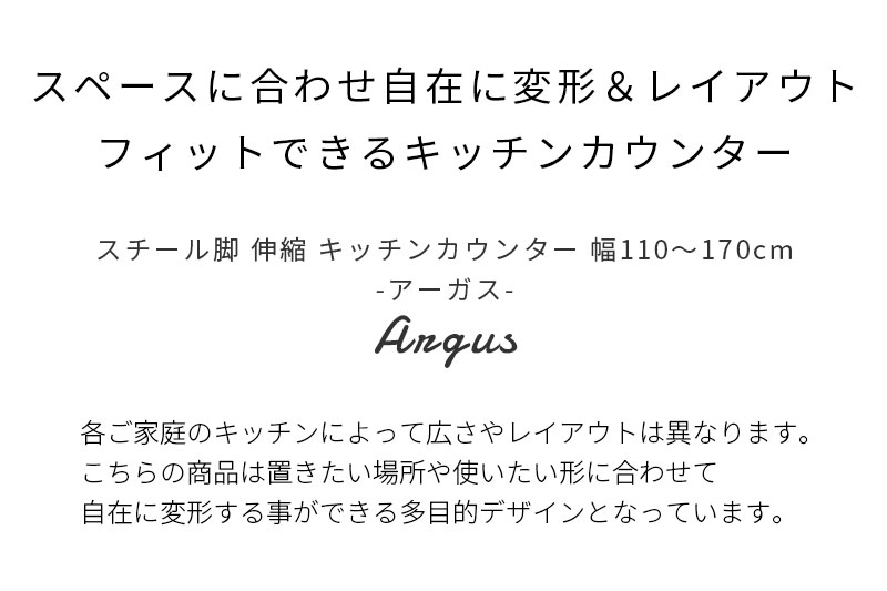 伸縮キッチンカウンター アーガス 幅110〜170cm