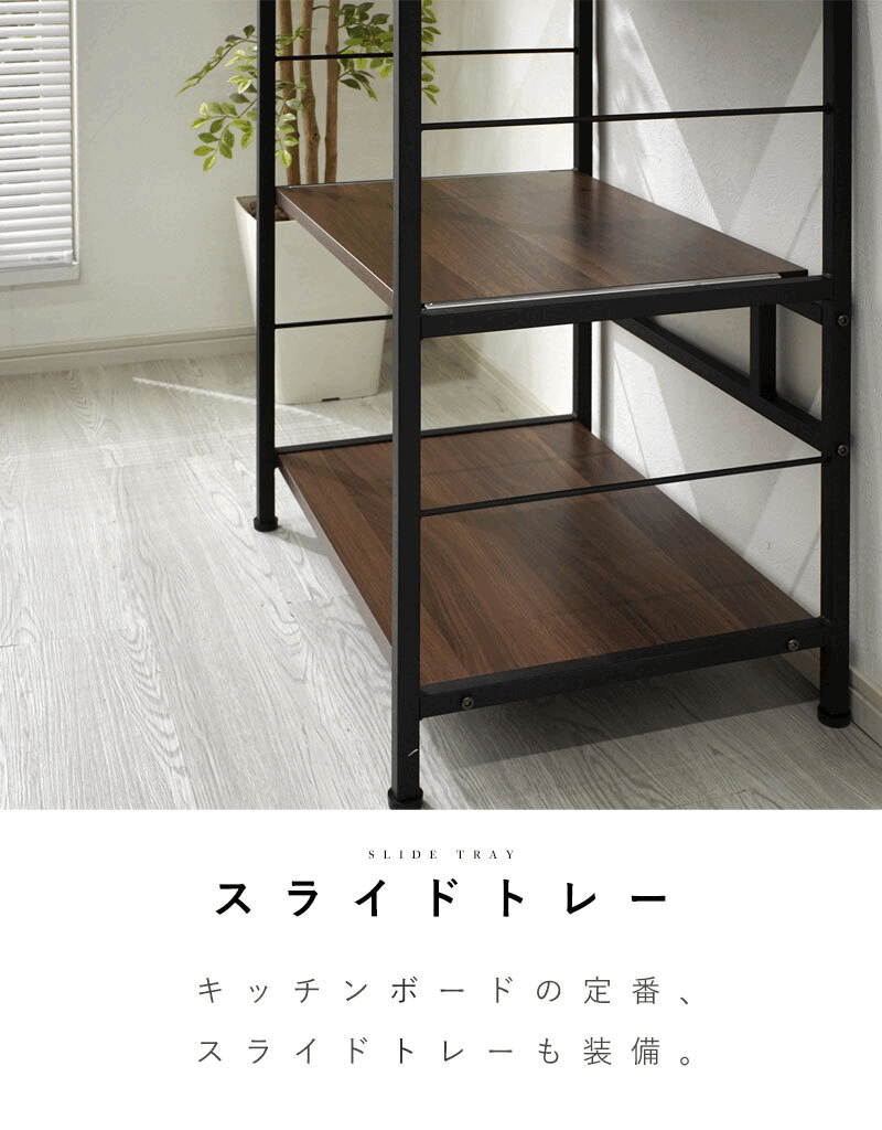 炊飯器やレンジ、オーブンなどのキッチン家電類、食器、食材をひとまとめに収納して、効率的にキッチンをお使いいただけるキッチンラックです。