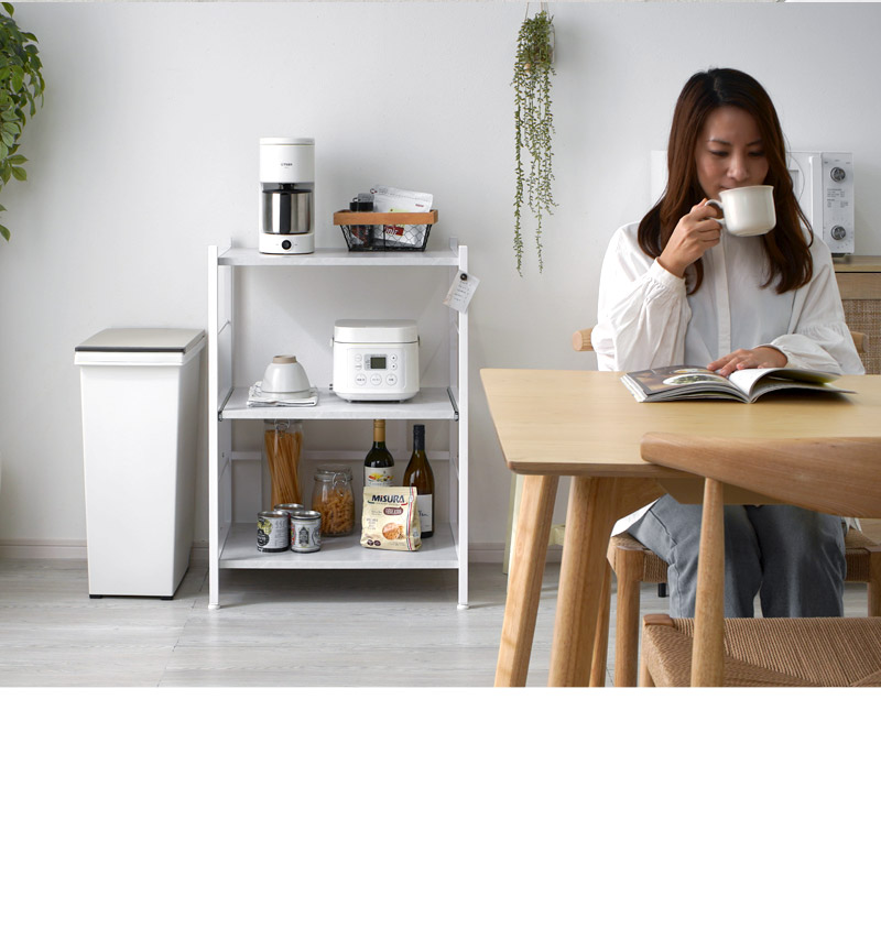 キッチン収納でのご使用はもちろん、使い勝手が良くシンプルなデザインなので、リビング収納やサニタリー収納としても活躍します。