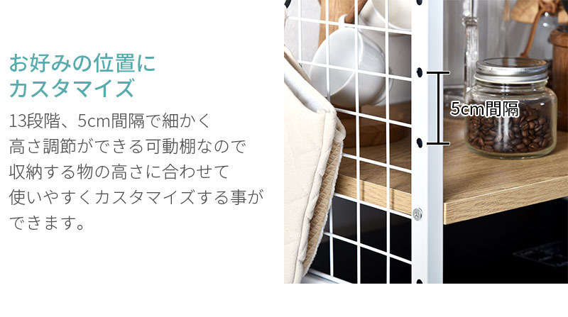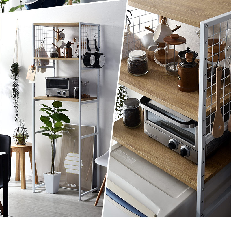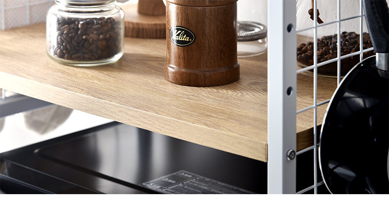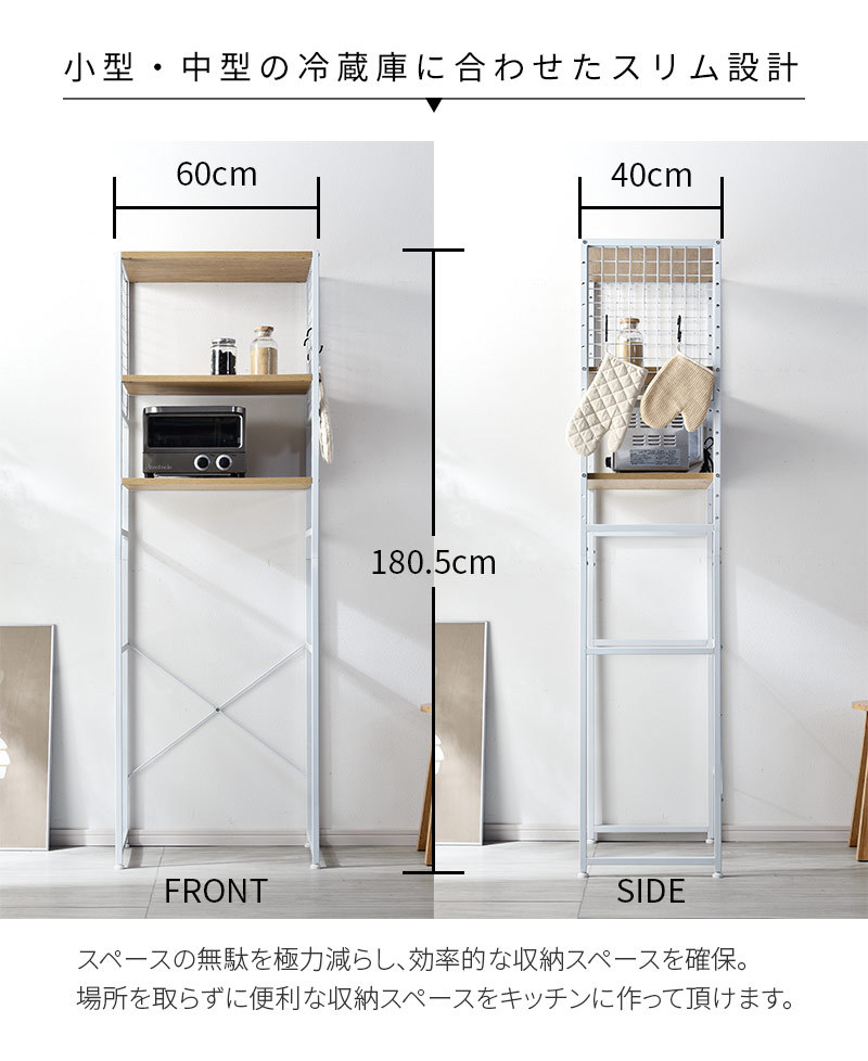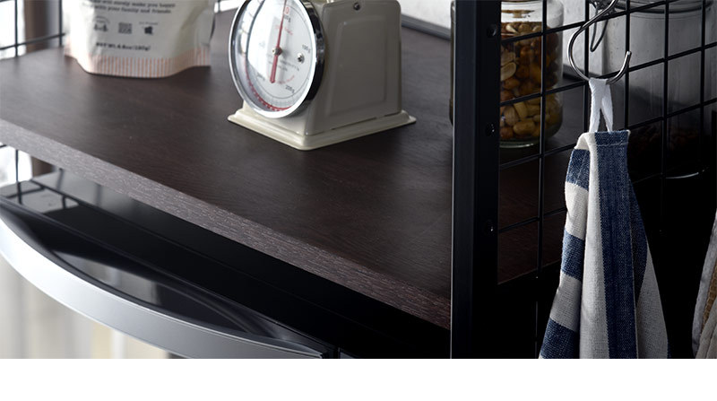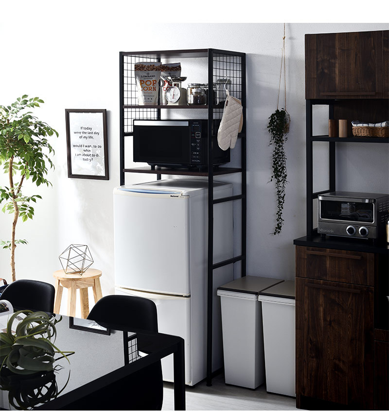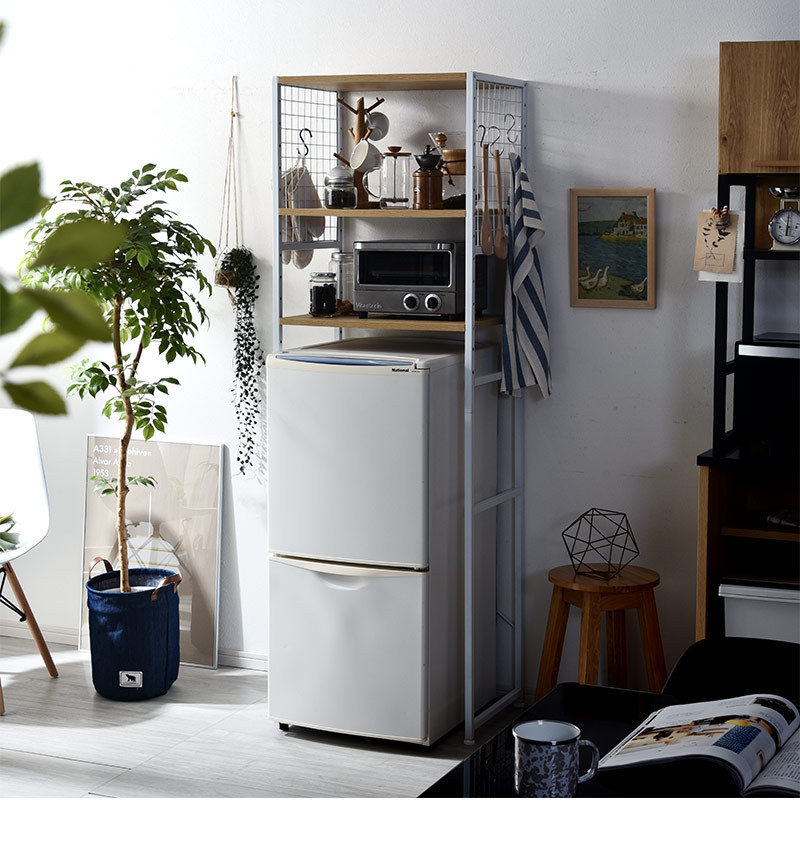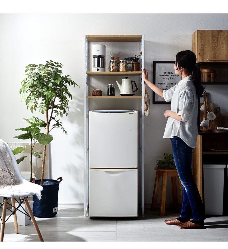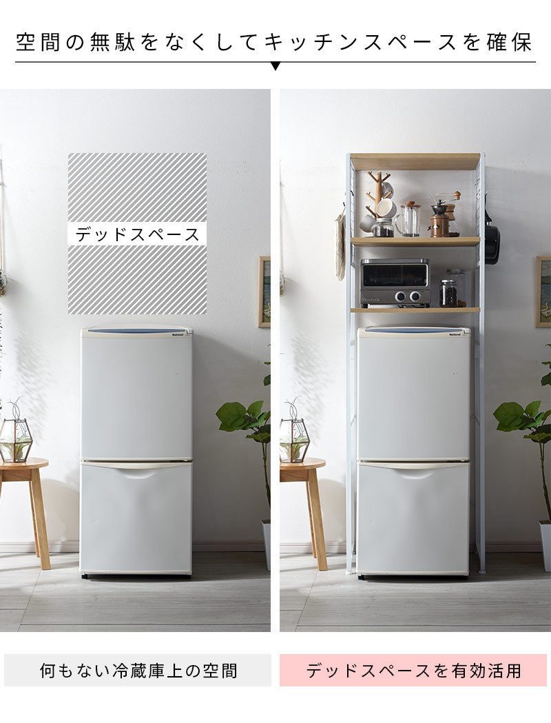 冷蔵庫上の空いたスペースが簡単に機能的な収納スペースへ変わります。
