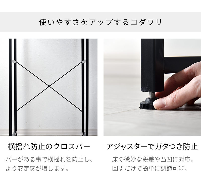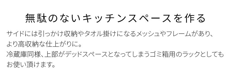 冷蔵庫同様、上部がデッドスペースとなってしまうゴミ箱用のラックとしてもお使い頂けます。