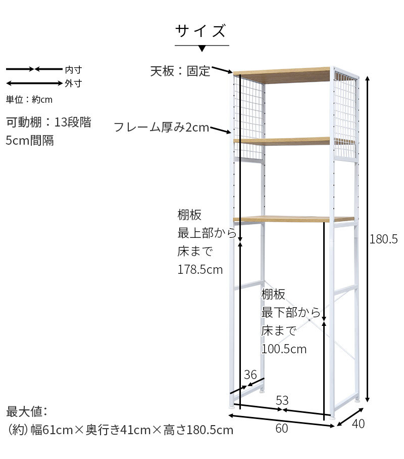 (約)幅60cm×奥行き40cm×高さ180.5cm
