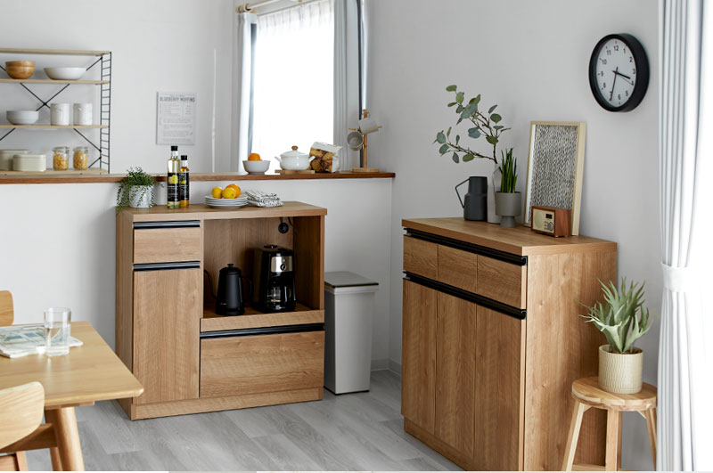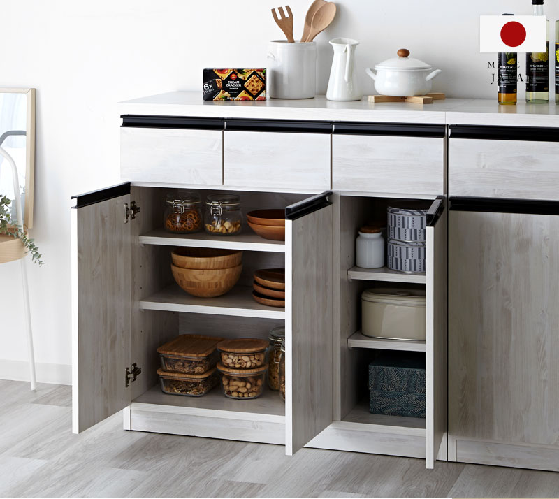 2杯の引き出しに、可動棚が付いた両開きの収納扉。機能や収納力はもちろん。お洒落さだって何一つ譲れない。そんなあなたにオススメしたい国産の収納カウンターができました。