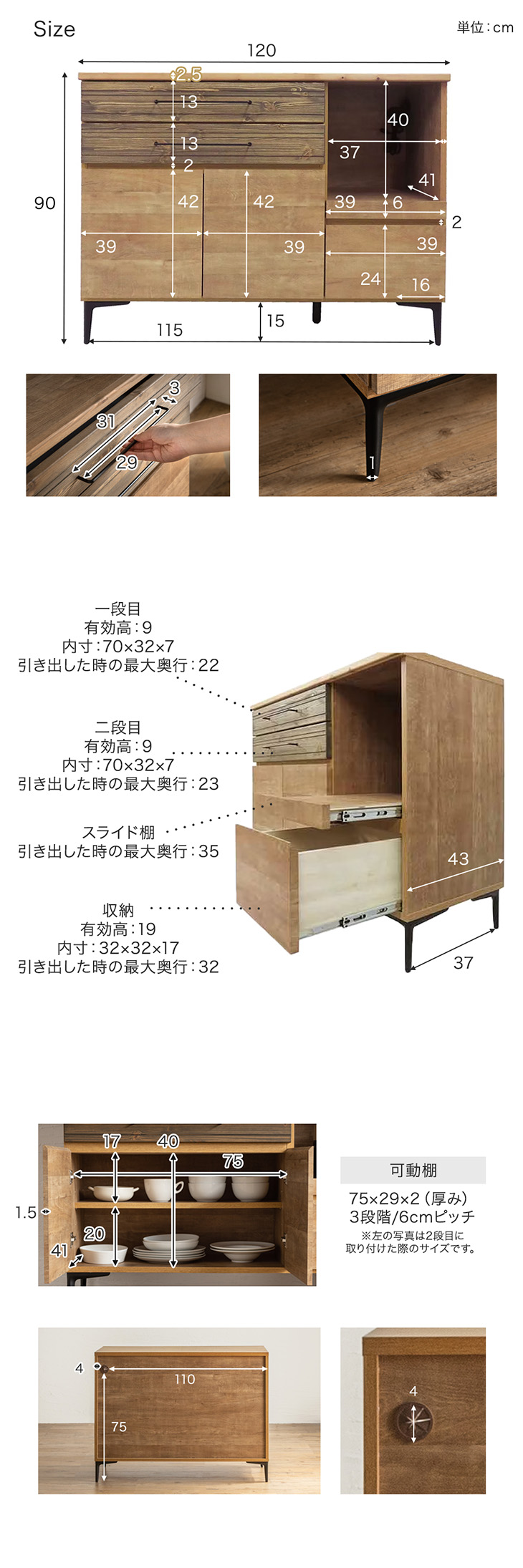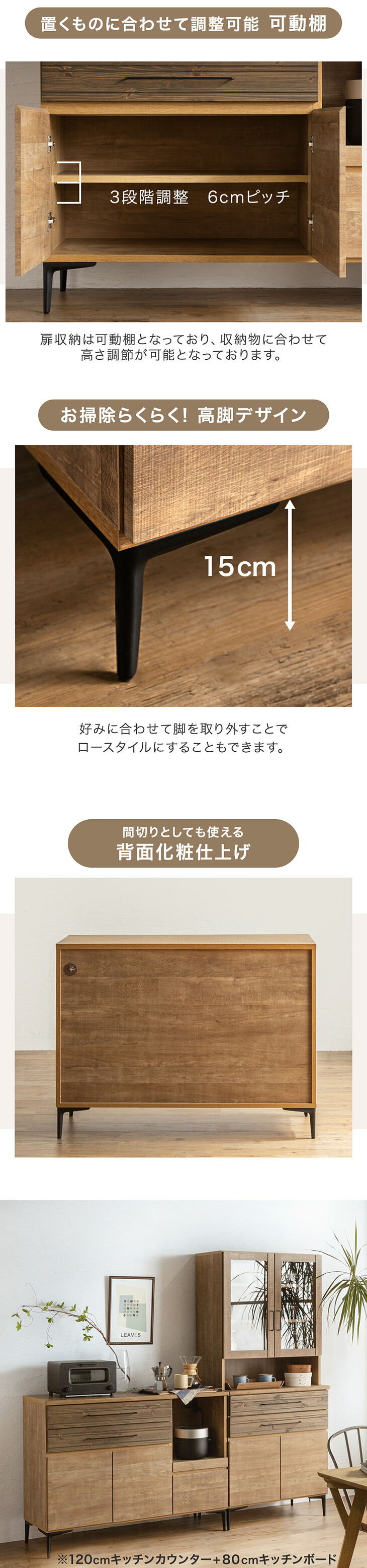 17日〜超お得 キッチンカウンター 収納 ロータイプ 食器棚 おしゃれ レンジ台 幅120 カップボード 収納 引き出し 完成品 木製 キッチン