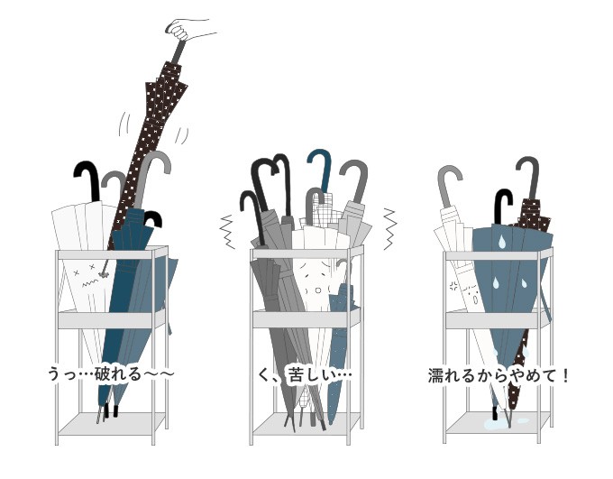 また、塗れた傘を一緒に収納してしまうと他の傘も濡れてしまったり