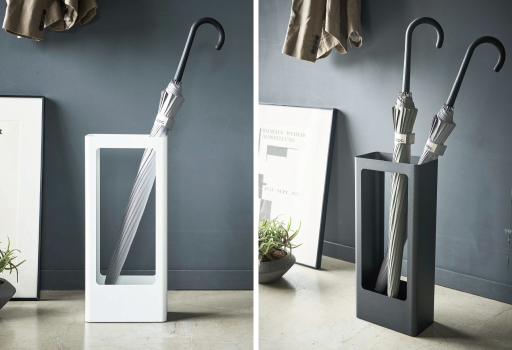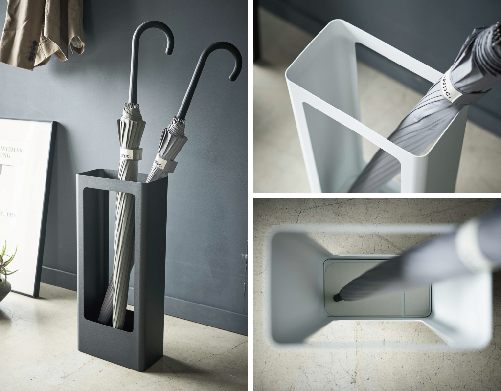 傘をスリムに収納できるシンプルな傘立てです。モノトーンの洗練された