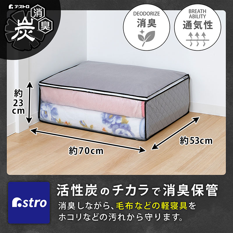 アストロ公式 製品保証付き 布団収納ケース 活性炭消臭 毛布 軽寝具用 活性炭で消臭 通気性の良い不織布 収納袋 ホコリを防ぐ 透明窓付き アストロ 171-70