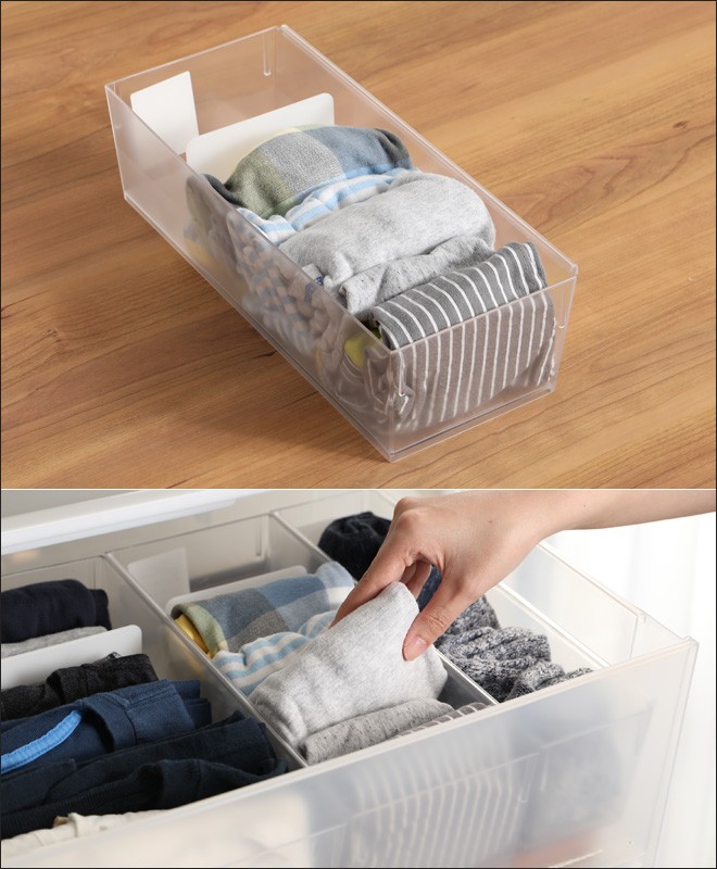 引き出しやタンスの中はもちろん、形によってはスタッキングボックスやカラーボックスの整理・収納にも活用できそう。