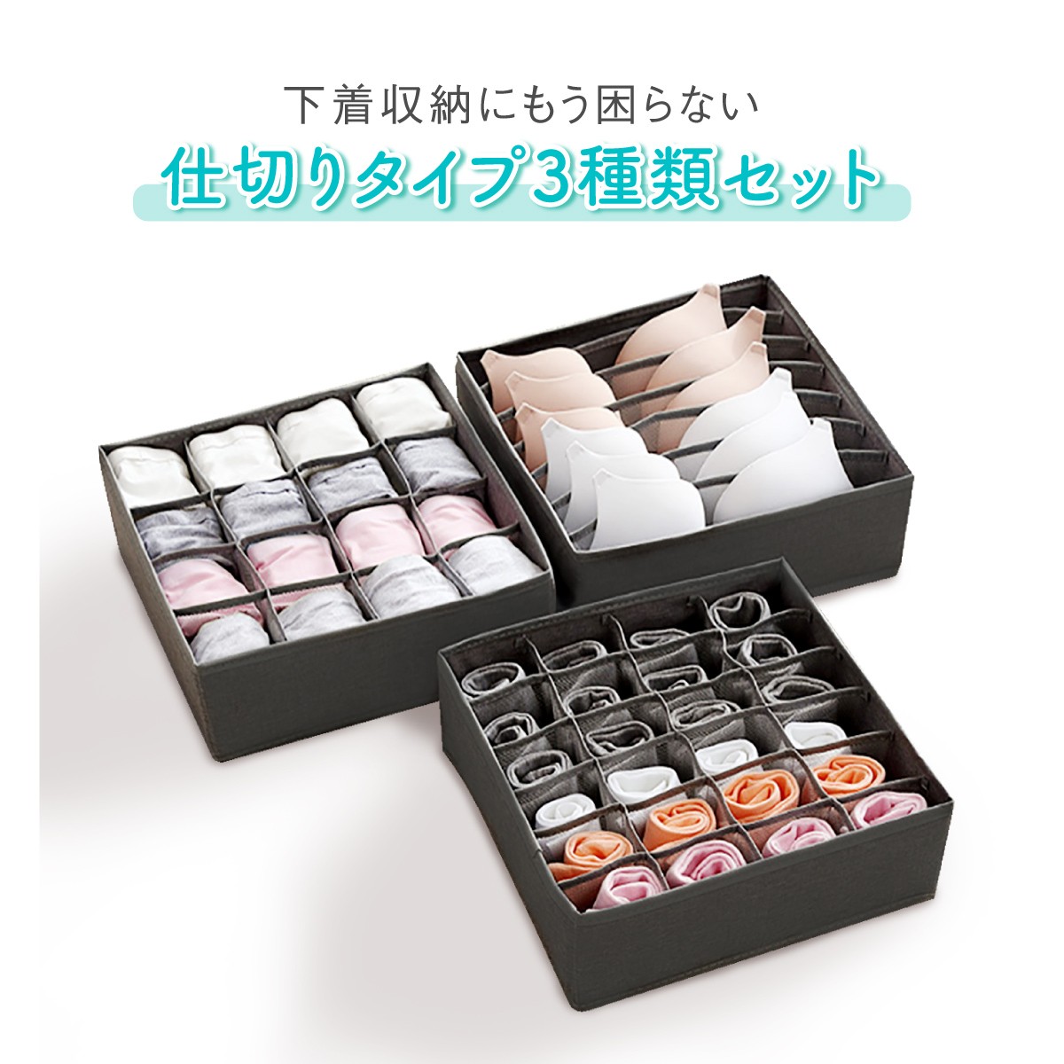 下着収納ケース 3点セット 7マス 16マス 24マス 仕切り 下着 靴下 収納 ケース 引き出し ランジェリー 収納ボックス 衣類 ld-case