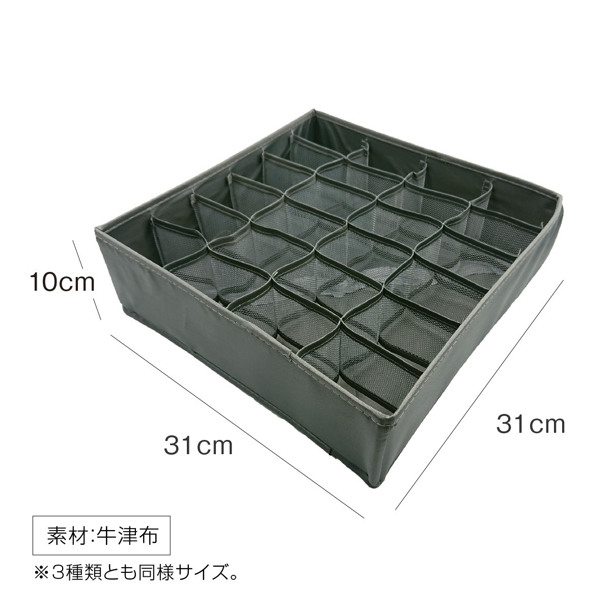 仕切り付き下着収納ケース 7マス 16マス 24マスの3点セット