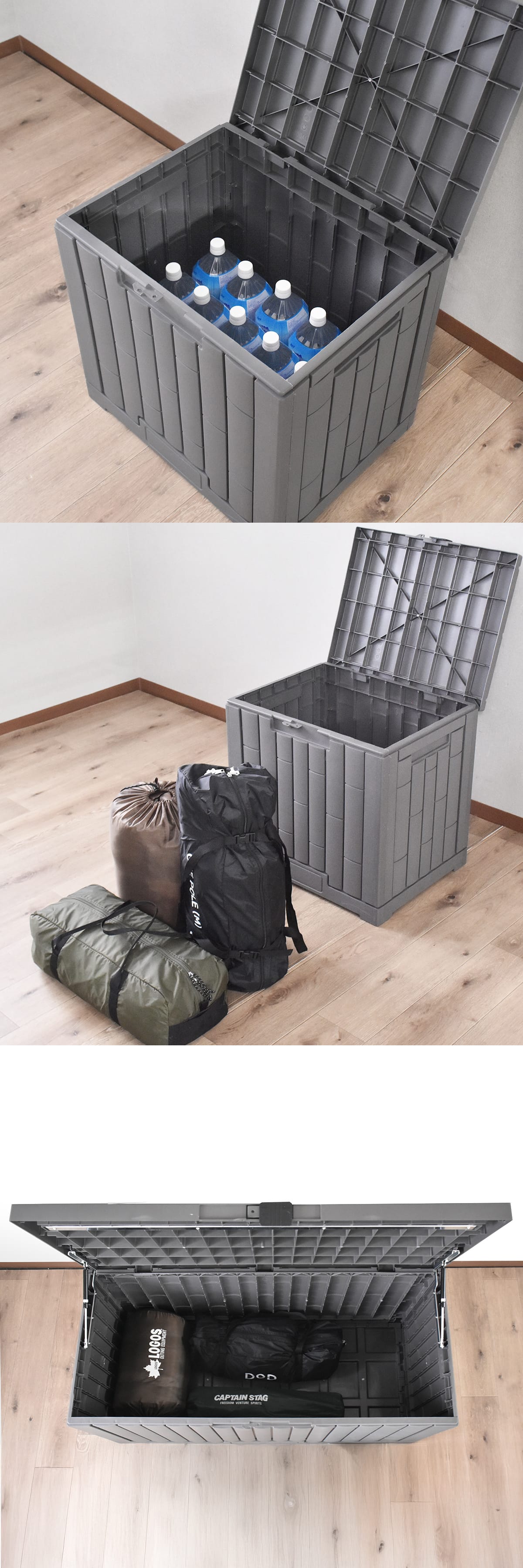 このコンテナボックスは大容量設計で、園芸用品やアウトドアグッズや灯油缶(プラスティック)、子ども用おもちゃなどをまとめて収納できます。容量が大きいので、複数の小物を一つに整理でき、庭やベランダがすっきり片付きます。箱の中で物が散らかることを防ぎ、取り出すときも迷わずアクセス可能。家庭用の屋外収納として、収納力と利便性を両立した仕様です。さらに、重たい道具も安心して収納できる頑丈さを持ち合わせており、家庭菜園の道具やガーデン用品の収納にも最適です。大容量だからこそ、必要なものを一箇所にまとめて保管できるので、庭先やベランダの整理整頓に役立ちます。