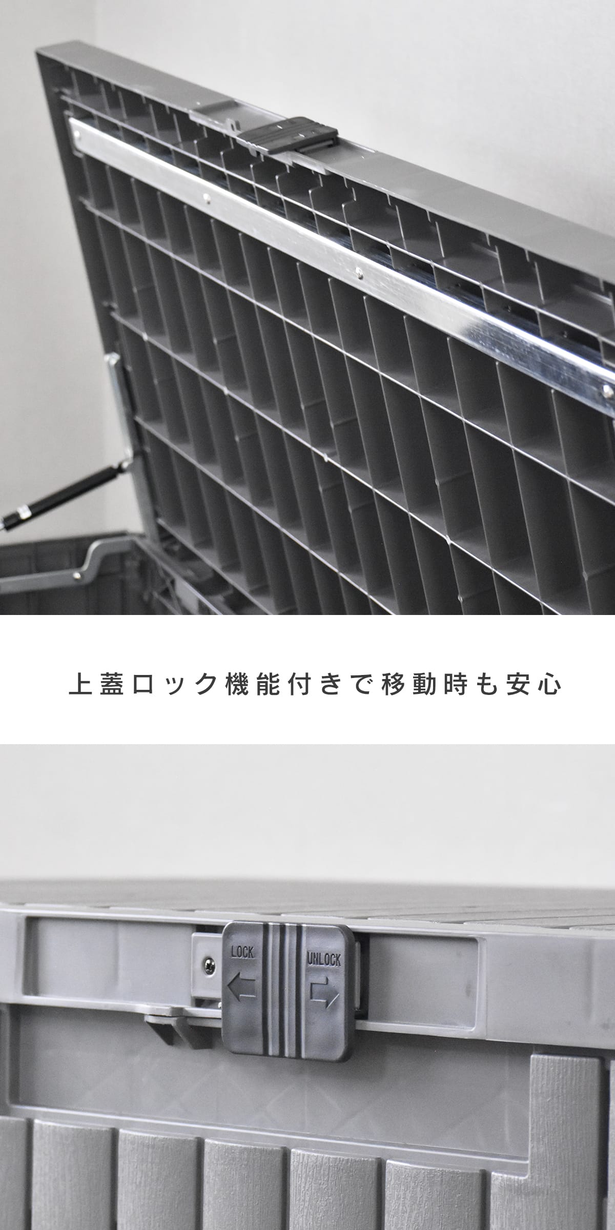 厚みのある樹脂素材と強固な構造で、屋外の厳しい環境でも安心して使用できます。雨風や直射日光に強く、長期間にわたり収納物を保護。庭やベランダでの使用はもちろん、ガレージボックスやダストボックスとしても活躍します。頑丈な作りは重たい道具や家庭菜園の用品も問題なく収納でき、安心して物をまとめられる設計です。屋外での耐久性を重視した設計は、長く快適に使える収納ボックスとして、日常の整理整頓を強力にサポートします。