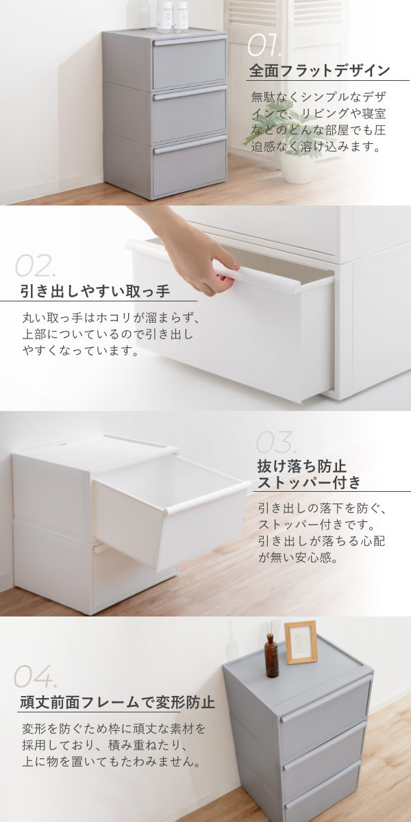 材質/本体・引出し・天板:ポリプロピレン
