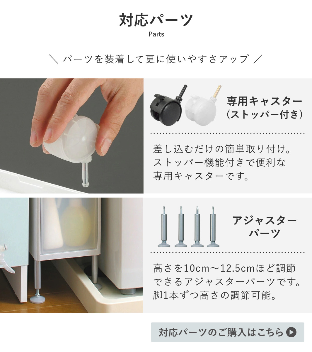 ●別売りのアジャスター、キャスターに対応しています。