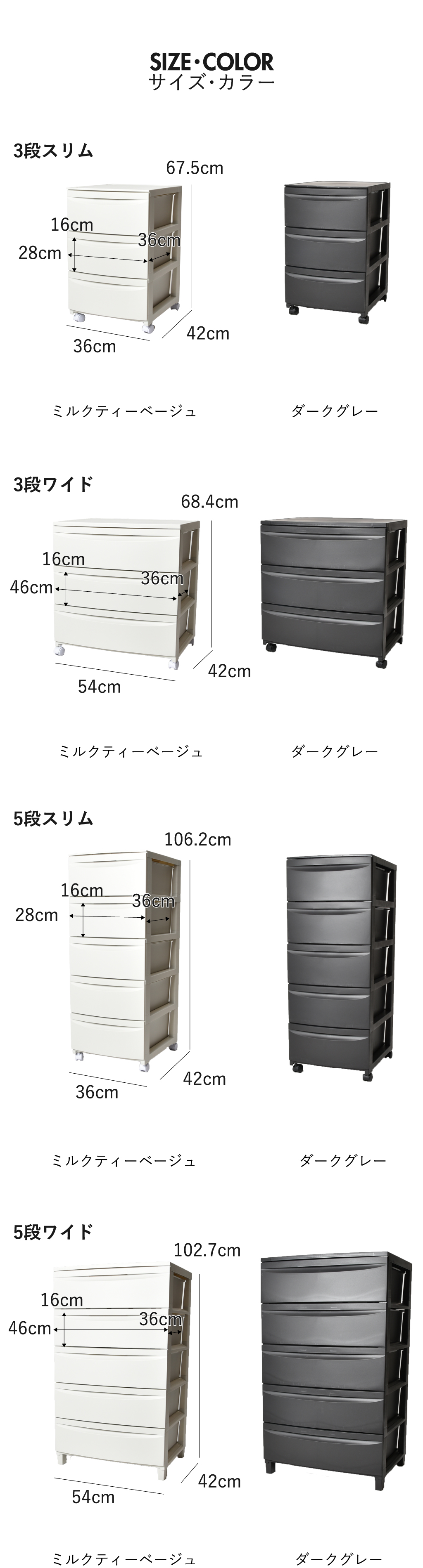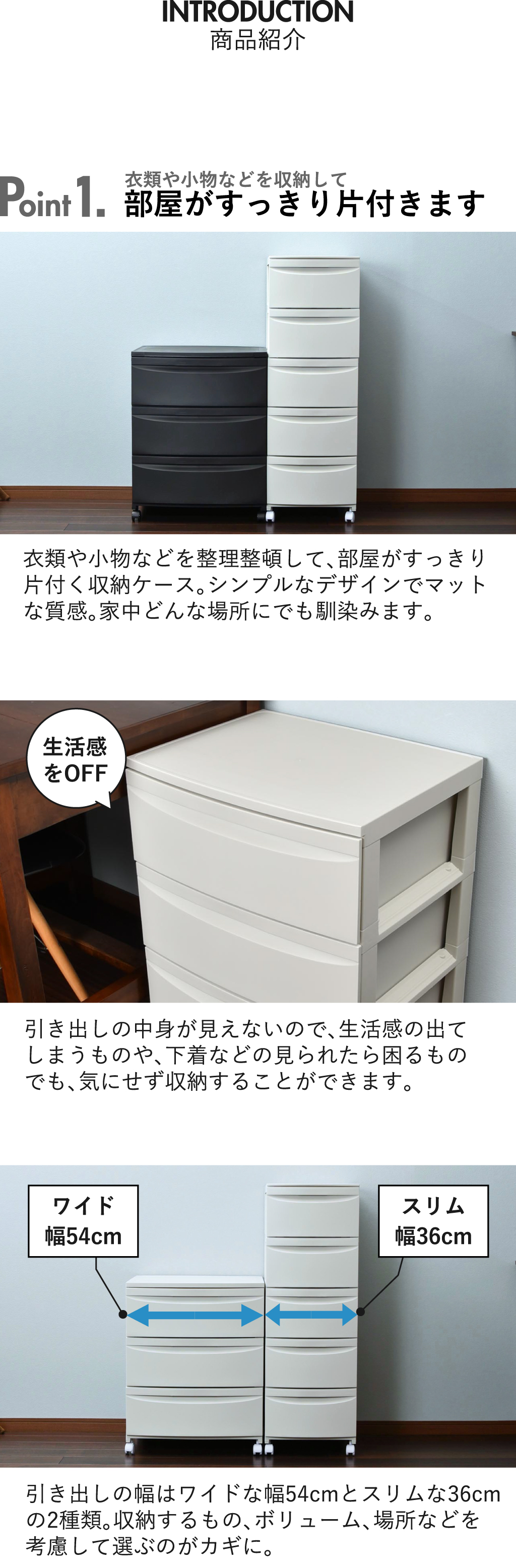 ※こちらは収納ケース 3段スリムの商品ぺージです。