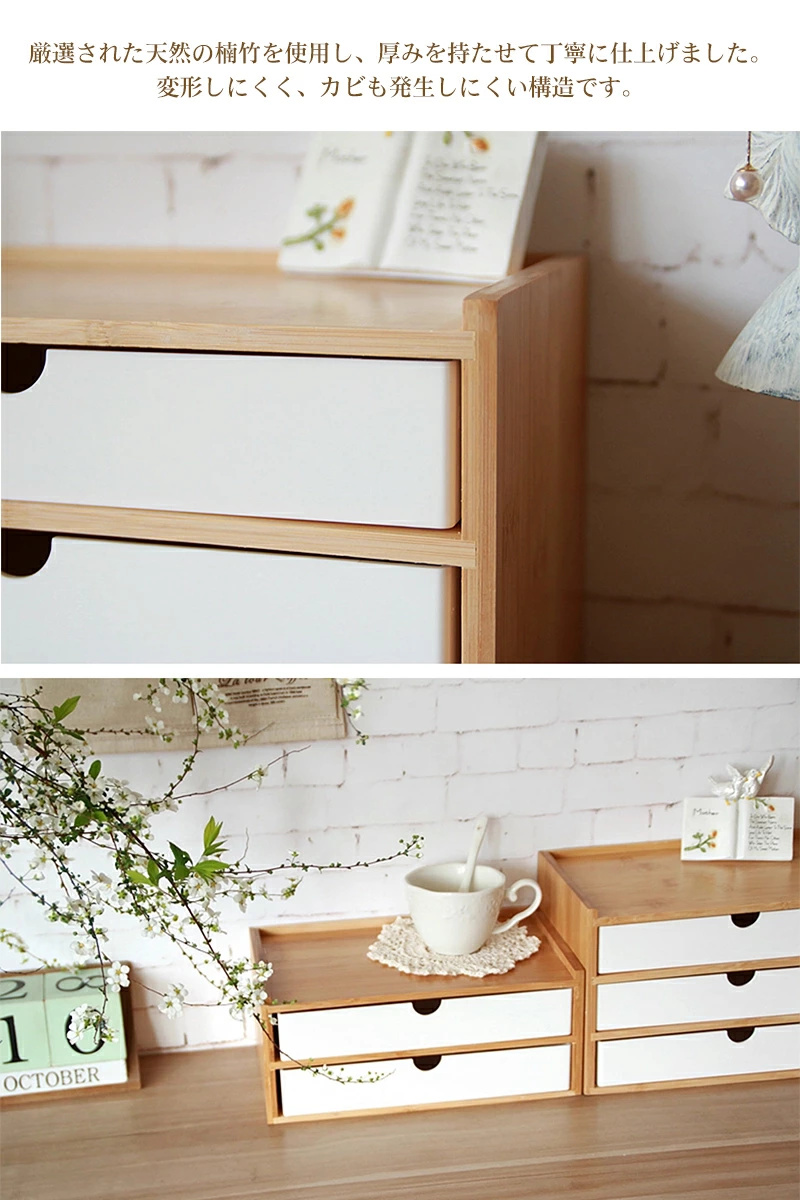 引き出し 卓上 竹製 卓上収納 卓上チェスト 机上収納 机上ラック 収納ボックス デスクトップ収納 インテリア 小物 洗面台 小物収納 ホワイト ブラック 木目 引き出し 小物入れ 小物整理 文房具収納 化粧品収納 北欧 おしゃれ シンプルなデザイン