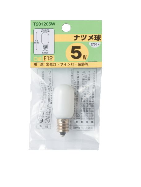 T201205W_ナツメ球 5W E12 ホワイト_YAZAWA(ヤザワコーポレーション)