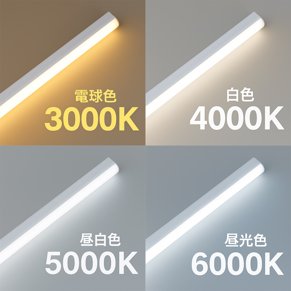 電球色3000K/白色4000K/昼白色5000K/昼光色6000K