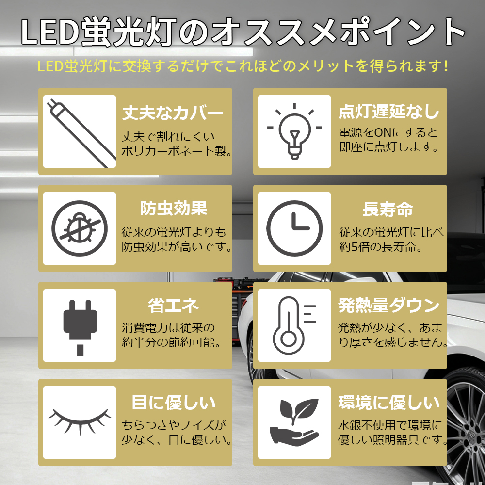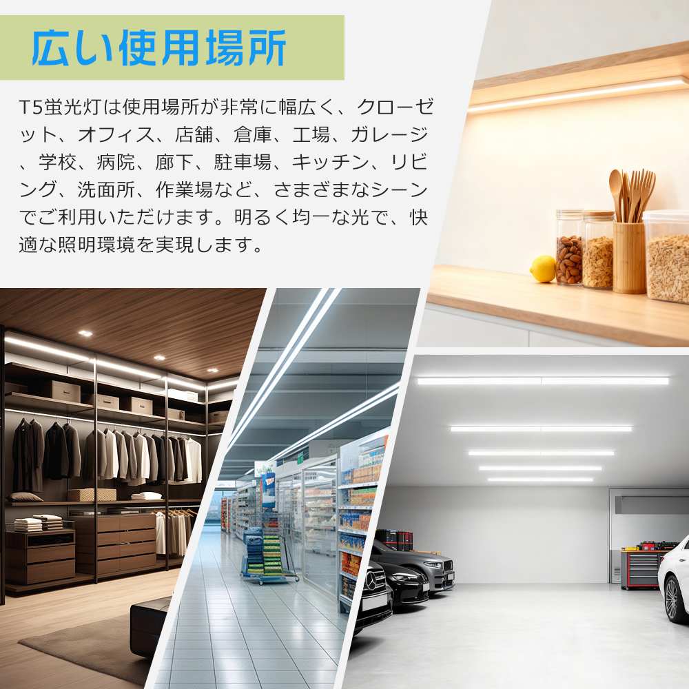廊下、キッチン、ガレージ、リビング、オフィス、学校、スーパー、事務所、病院、本屋など、家庭用照明はもちろん、商業施設でも幅広くご利用いただけます。