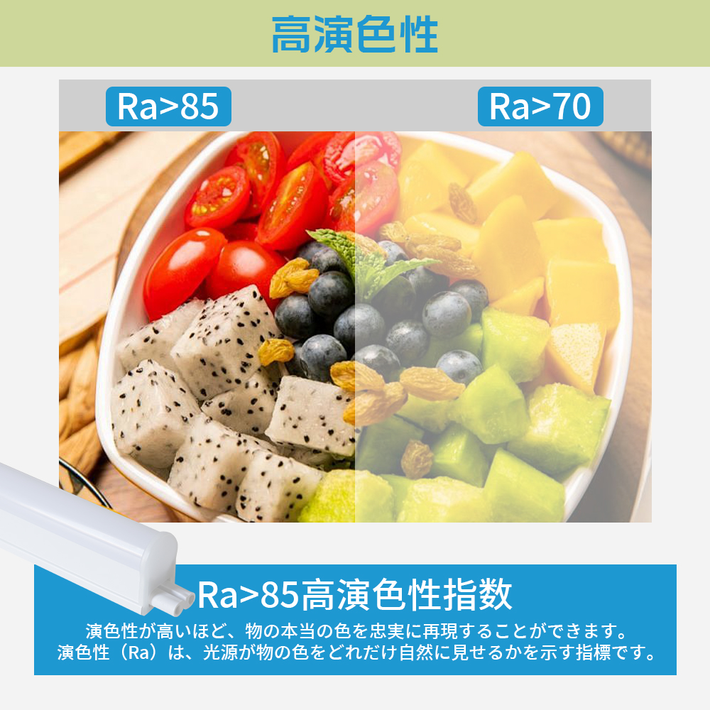 他店では電源ケーブルや接続プラグが別売りの場合もありますが、当店のT5ライトは必要な付属品をすべて同梱しております。追加購入の手間がなく、商品到着後すぐに設置・使用が可能です。省エネ性能にも優れ、同等ワット数でもより明るい発光を実現。高輝度ながら電気代を抑え、効率的な照明環境を提供します。