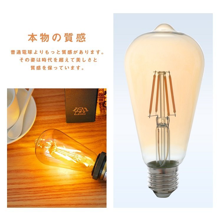 ●【360度全方向に発光します】半面しか発光しない一般的なLEDとは異なり、全方向白熱電球のように360度発光しますので、本当に明るいLEDフィラメント電球です。