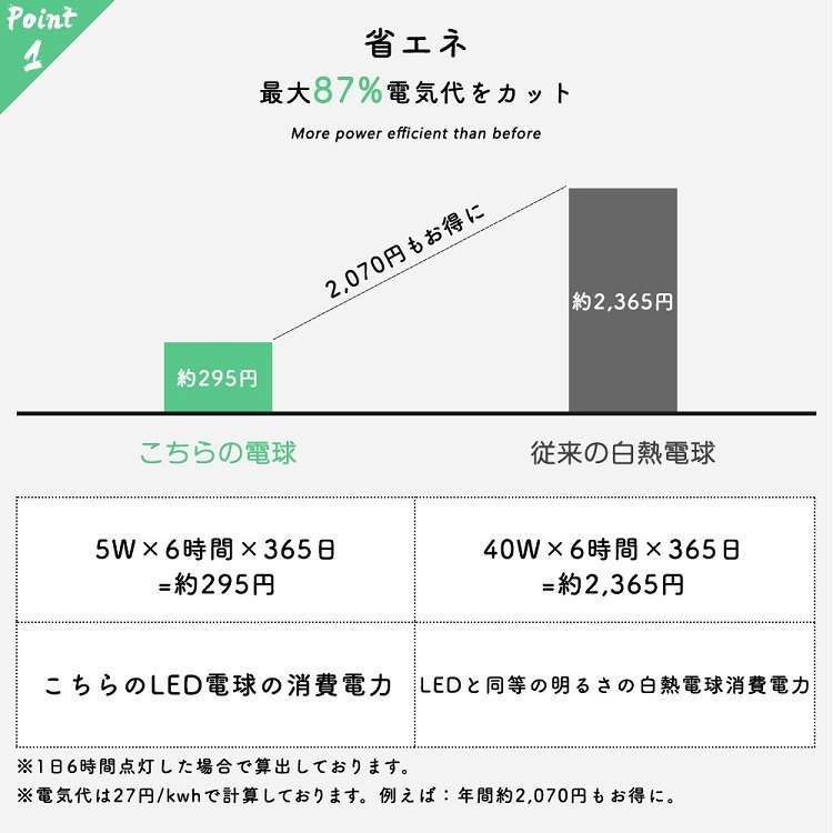 ●【省エネ&エコ】:水銀を含有していない、環境にも配慮したLED電球です。また全方位の拡散で長時間使用眼も疲れを感じない