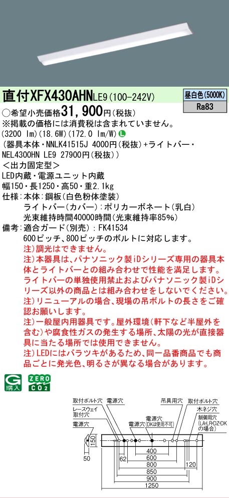 在庫あり XFX430AHNLE9 パナソニック iDシリーズ Dスタイル W150 5000K 昼白色 非調光 XFX430AHN LE9 【法人様限定販売】